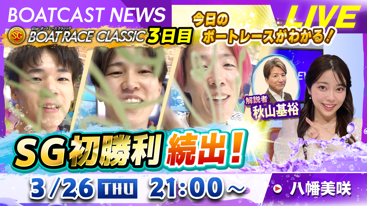 熊谷直樹さんがリモート出演!SGボートレースクラシック11R・12RをLIVE解説!3月26日(木)19時50分から生配信!|植木通彦のボートレースウィークリー|ボートレース